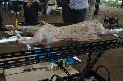 おにぎりやチーズなどの差し入れ、そしてBBQのメインは子羊の丸焼きでした。