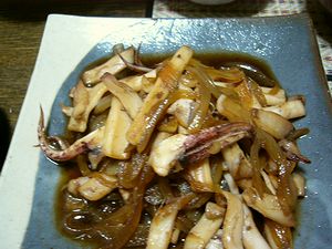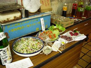 タコのマリネ、ブリ大根、マグロとイカの刺身、茹でホタルイカ、お酒もあります