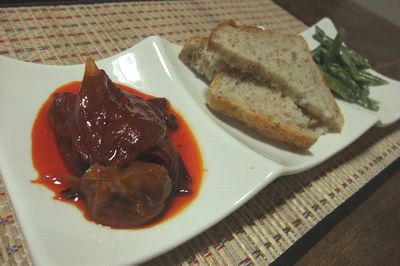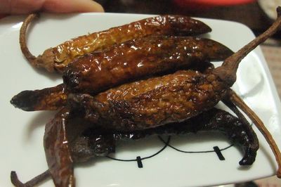 赤ピーマンのオイル漬けとインゲンの自家製アンチョビ炒め