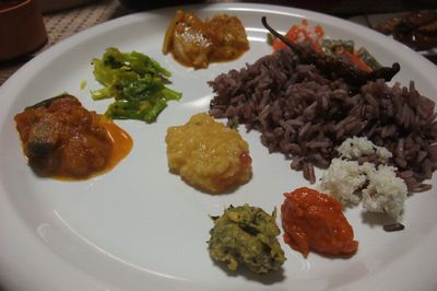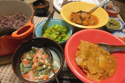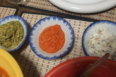 チャトニ3種。左からコリアンダー、トマト、ココナッツ