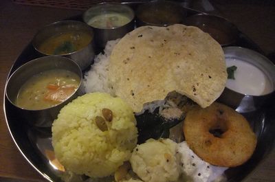 ワダの他にも大きく丸めたクレープ状のドーサや米を発酵させた蒸し料理イドゥリなどがあります。