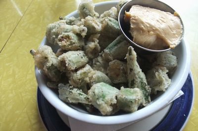 おくらのフライ。このこってりぴり辛マヨネーズが旨い